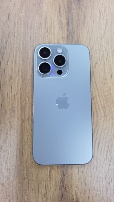 Məhsul: Apple iPhone 15 (Pro Max) - Rəng: natural titanium (mat arxa panel) - Port: USB‑C şarj/data girişi, stereo dinamik çıxışları - Kamera sistemi: arxada 3 linzalı pro kamera modulu (geniş, ul...