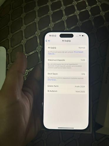 - Batareya məlumatı (ekrandan): Maksimum tutum 89%, dövr sayı 376; İstehsal tarixi: Dekabr 2024; İlk istifadə: Mart 2025