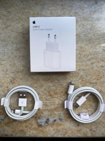Iphone adapteri ve kabeli 20W tam orginal adapter basliqi 35 azn. Iphone 15 pro qutusundan cixan kabel 35azn. 14pro qutusundan cixan Type-c kabel 35 azn. Iphone 11 qutusundan cixan usb kabel 25 a...