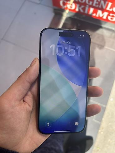 Məhsul: Apple iPhone (Pro seriyası) Rəng: Qara (tünd) Yaddaş: 128 GB (şəkildə saxlanclar menyusu görünür) Ekran: Dynamic Island-li tam ekran OLED Kamera: Arxada 3 linzalı pro səviyyəli kamera siste...