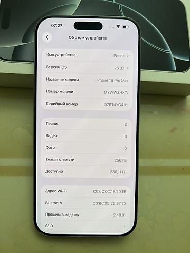 📱 Satılır iPhone 16 Pro Max • Yaddaş: 256 GB • Batareyanın vəziyyəti: 93% • Telefon ideal vəziyyətdədir, problemsiz işləyir • Face ID, kameralar və dinamiklər tam işləkdir Qiymət: 1700