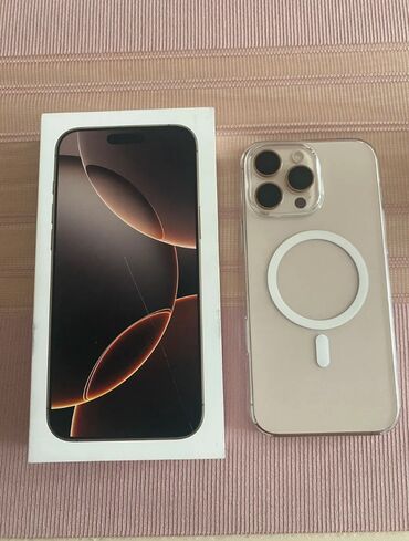 Satılır: iPhone 16 Pro Max — 512 GB, Desert Titanium iPhone 16 Pro Max telefonumu satıram. Telefon ideal vəziyyətdədir, heç bir problemi yoxdur. Yalnız anti-udar ekran qoruyucusu ilə istifadə olun...