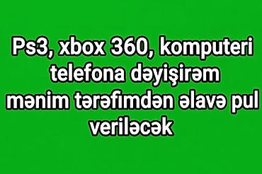 Ps3, Xbox 360 və komputeri mobil telefonla barter etmək istəyirəm. Barter zamanı mənim tərəfimdən əlavə pul veriləcək. Telefon modeli və xüsusiyyətləri barədə təkliflərinizi göndərin.