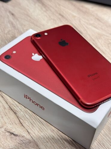 IPhone 7 (PRODUCT)RED – 4.7" Retina HD ekranlı, Touch ID-li, qırmızı korpuslu model.