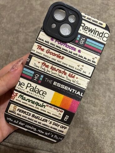 2) “Rewind to the Eighties” üslubunda kaset-kolleksiya printi (The Goonies, The Karate Kid və s. başlıqlar).