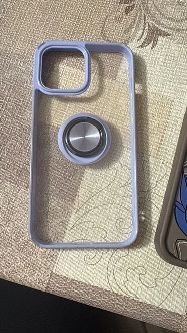- Bənövşəyi çərçivəli şəffaf örtük, mərkəzdə 360° fırlanan barmaq halqası/stant funksiyalı metal ring.