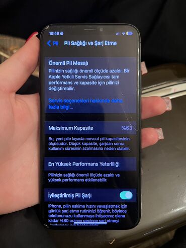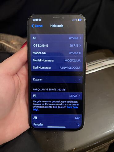 iPhone Xİphone X, 63%pil 64gb, yenidir, sadece uzunde ciziglari var,ve ekraninda son sekilde gosterildiyi kimi klavyatura izi qalib. Kicik problemdir. Ekran deyisildikde duzelen birseydi. Arxa hissesi yenidir. Cizigi bele yoxdur. Korpus kimi de satila biler qiymet eynidir. Pili az olmagina baxmayarag narmal zaryatka saxlayir.