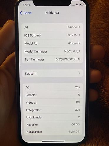 Məhsul: iPhone X (qutu şəkli) Feysaydı işlemir pil 100 cec bir problemi yoxdur yadaş 64gb