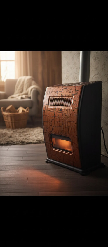 Dekorativ klassik dizaynlı elektrik sobası/şömine. Gümüşü rəng, relyefli naxışlar və arkalı dekor panel ilə. Ön hissədə qoruyucu barmaqlıq, yan tərəfdə idarəetmə düymələri. Şüşə ön paneldə Behkaran...