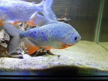 - Növ: Pirana tipli böyük tetra (gümüşü-bənövşəyi ləkəli gövdə, narıncı üzgəclər və qarın altı sahə)