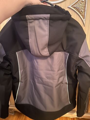 İşçi gödəkçəsi – yaşıl və tünd boz rəng kombinasiyası - Material: sıx toxumalı parça (iş mühitinə uyğun, möhkəm və rahat). - Dizayn: klassik yaxalı, düyməli ön bağlama. - Rəng detalları: neon-sarı...