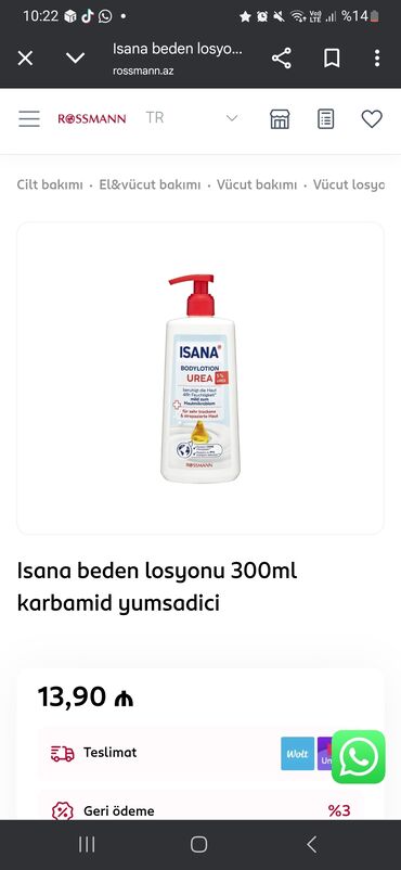 İsana mehsulları satılır:beden spreyi,üz temizleme yağı,üz temizleme