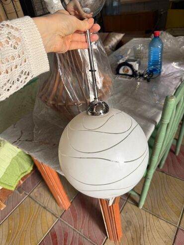 - Material: mat ağ şüşə/plastik kürə tipli plafon, xrom rəngli metal asqı