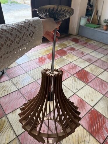- Material: təbii ağac lamellər, metal asqı və tavana bərkidici əsas