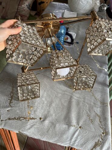 - Material: metal gövdə (qızılı rəng), şəffaf kristal bəzəkli kvadrat plafonlar