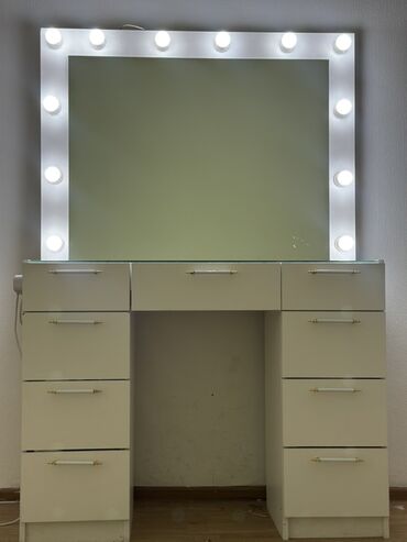 Dəst tərkibi: işıqlı güzgü paneli + masa gövdəsi və siyirmələr.