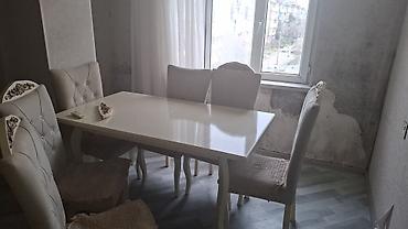 İstifadə olunmayıb yeni kimidir. Yenədə razılaşma olacaq. Qonaq otağı mebel dəsti Tərkibi: - 6 stul ilə iri yemək masası – qara mərmər naxışlı parlaq üstlük, krem rəng karkas, qızılı oyma ayaqlar...