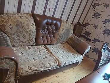 Mebel dəsti – klassik və müasir elementlərin kombinasiyası - Klassik üslubda üçnəfərlik taxta karkaslı divan: oyma detallar, qəhvəyi yumşaq oturacaq və bel hissəsi, əyri ayaqlar. Yanında uyğun diz...Giriş•Qeydiyyat