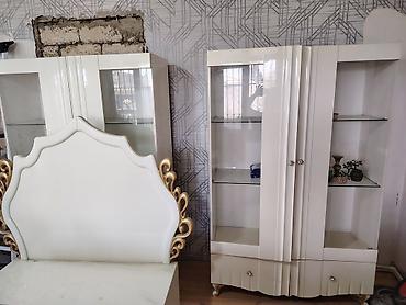 Ağ rəngdə vitrin və TV tumbası dəsti