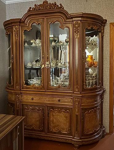 Səliqəli istifadə olunub.Klassik üslubda zövqlə işlənmiş qonaq otağı mebel dəsti. Tərkib: - Böyük vitrin şkaf: ön və yan hissələri şüşəli, içəridə şüşə rəflər; aşağı bölmədə qapalı dolablar və çek...