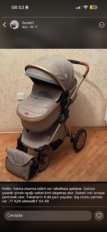 Uşaq arabası – çoxfunksiyalı beşik‑tipli model, yerdəyişmə ilə bağlı təcili dəyərindən aşağı satılır - 2‑də‑1 sistem: körpə üçün tam düz beşik bölməsi və oturaq vəziyyətə keçə bilən bölmə - Tənzi...