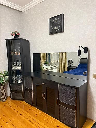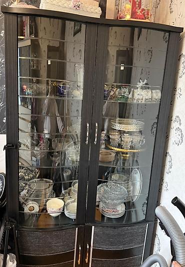 - Material: MDF/LDSP əsaslı korpus, şüşə vitrin qapıları və rəflər