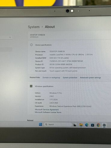 💻 HP EliteBook 850 G3 ✅ Əsas Texniki Xüsusiyyətlər: Prosessor: Intel Core i7-5600U CPU @ 2.60GHz RAM: 8 GB (istifadəyə yararlı: 7.88 GB) Sistem: Windows 10 Pro, 64-bit Disk: 237 GB SSD (184 GB...