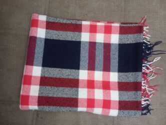 Şahmatnı naxışlı, kənarı saçaqlı nazik pled. Eni 142, uxunluğu 162 sm. Az istifadə olunub, deffektsizdir.