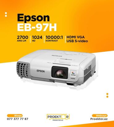 Proyektor "Epson 97H" Proektor Epson 97H. Yeni lampa ilə. ideal vəziyyətdədir. Zəmanət verilir. 2700 ansi lumen 2 x HDMİ RJ 45 VGA 1080 HD 15000:1 kontrast --------------------------------------...