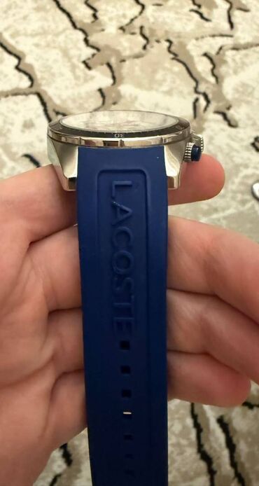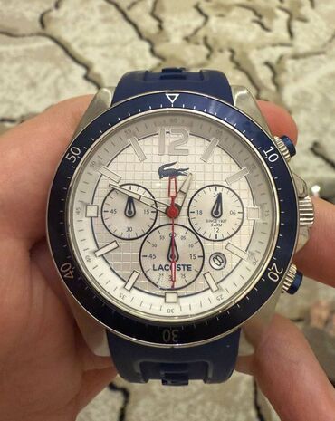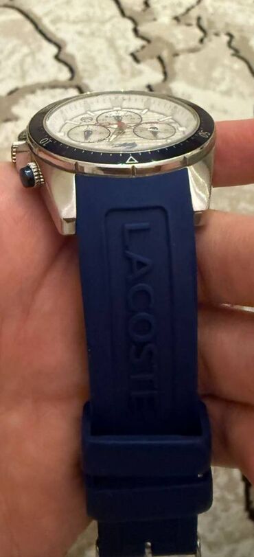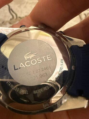 Lacoste qol saatı – ağ rəngli silikon qayışlı, ön şüşəsində iri yaşıl Lacoste timsah loqosu. Korpus paslanmayan poladdandır, arxa qapaqda “All Stainless Steel” və “Water Resistant” yazıları mövcudd...