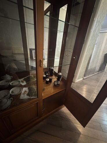 Türkiyyə istehsalı olan qonaq dəsti. 1. Stol + 6 stul 1.60×0.90×0.75 açılarkən 2.00 2. TV altlığı 1.20×0.45×1.40 3. Güzgülü servant 2.00×0.45×1.20