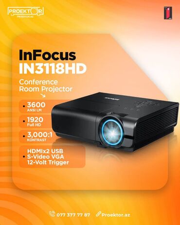 Proyektor "inFocus in3118HD" Proyektor inFocus in3118HD Proektor InFocus İdeal vəziyyətdədir. yeni lampa ilə. cox işıqlı göstərir. İşiqli otaqda da istifadəsi mümkündür. 🎯- 1 il yazili qizil zəma...