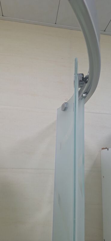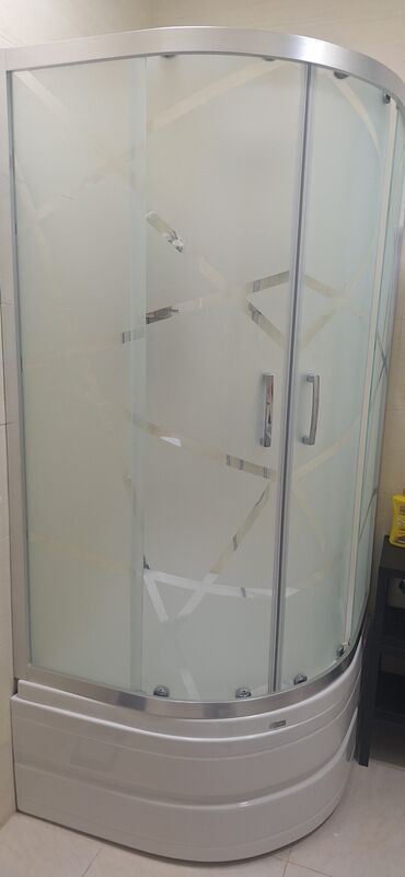 Şüşə duş kabinası - Forma: düzbucaqlı, künc quraşdırma üçün. - Material: temperli şüşə panellər, yarı mat (qumlu) və şəffaf zolaqların kombinasiyası əlavə məxfilik üçün. - Çərçivə: paslanmayan met...