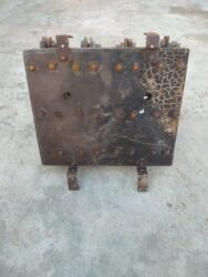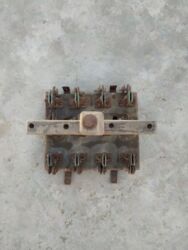Köhnə tip mexaniki elektrik açarı (bıçaqlı keçid). Çoxqütblü quruluş, ön tərəfində taxta tutacaqla əl ilə açıb‑bağlama mexanizmi var. Üst hissədə kontakt cütləri və sıxma vintləri, arxa tərəfdə montaj üçün metal bərkidicilər mövcuddur. Sənaye və ya emalatxana şitlərində fazaların eyni anda açılıb‑bağlanması üçün nəzərdə tutulmuşdur. Koleksiya, restavrasiya və ya texniki layihələrdə istifadə üçün uyğundur.