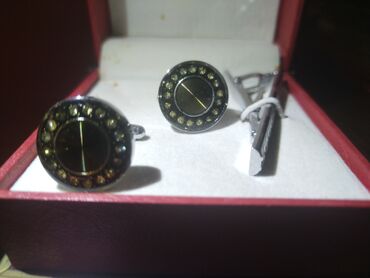Dəyirmi, oval formalı, qara və gümüşü rəngli manjet düymələri. Hər bir