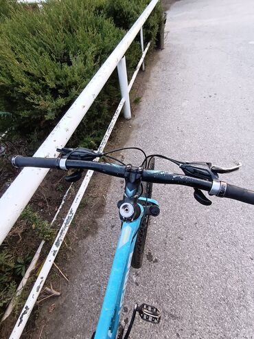 Trinx M600 dağ velosipedi. Çox az işlənib, yeni kimidir, problemsizdir. - Çərçivə: yüngül alaşımlı, ağ rəngdə, Trinx M600 seriyası - Təkərlər: 29" (Arctic şinlər), möhkəm dişli protektor - Amortiz...