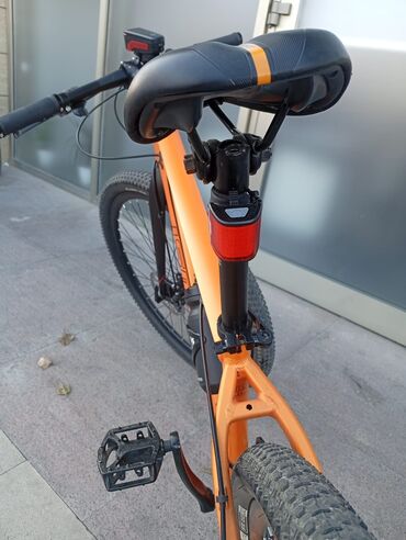 Şəhər və off-road sürüşlər üçün dağ velosipedi - Rəng: parlaq narıncı - Çərçivə: hardtail alüminium tipli (amartizatorlu ön forcella) - Təkərlər: 29" ölçülü, enli protektorlu şinlər - Əyləclər: di...