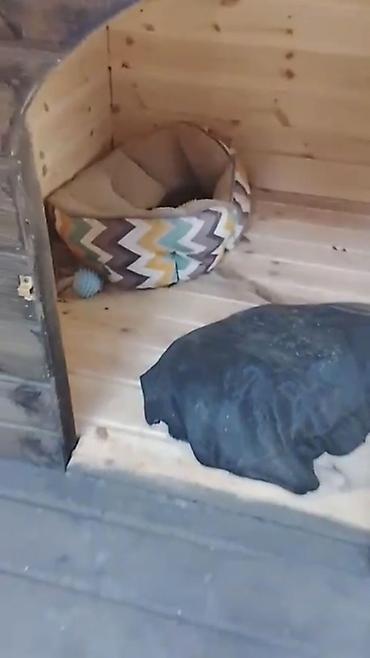 Məhsul: It yuvası - Material: Taxta karkas, möhkəm metal/profilli dam örtüyü - Rəng: Boz tonlarda, kənarları açıq rəng taxta haşiyələmə - Konstruksiya: İkiqat maili dam, havalandırma pəncərəsi, ön...