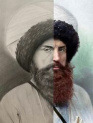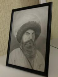 Dəri üzərində oyma təsvirli dekorativ tablo. - Mövzu: at üstündə