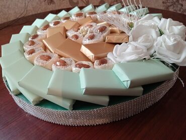 İstənilən növdə sifariş qəbul edirəm. Toy, nişan, xına, ad günü, bayram və.s hər növ xonçalar hazırlayıram. Həmçinin paylama konfetlərin bəzədilməsi, saç aksesuarlarının hazırlanması da təfərimdən həyata keçirilir. Sifariş üçün nömrəmə yaza bilərsiniz.