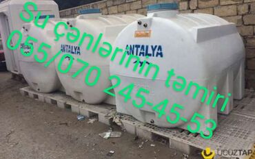 İstənilən ölcüdə plastik su çənlərinin təmiri heç bir yapışdırıcıdan (kleydən) istifadə olunmur təmir plasmas qaynağı ilə həyata keçirilir Üvana görə qiymət dəyişir. işimizə 100 % zəmanət verilir
