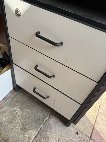 Ofis mebel dəsti – L formalı rəhbər masa, köməkçi yan masa və jurnalı - Dizayn: Açıq palıd rəngli taxta teksturası və qara dekorativ elementlərin kombinasiyası, müasir minimal üslub. - Masa: L fo...