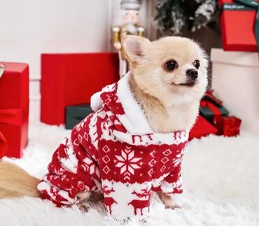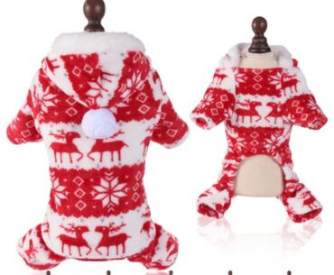 Məhsul: İt üçün qışlıq kombinezon – qırmızı-ağ, şenlik temalı