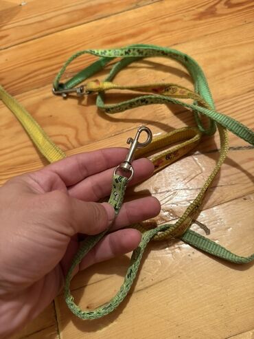 - 1 ədəd rəngli (yaşıl-sarı tonlarda) parça qayış: üzərində naxışlı lent, möhkəm tikişlər, metal karabinlə asan bağlanma. Gəzinti və gündəlik istifadə üçün rahat, əl dövrəsi tutacaqla.