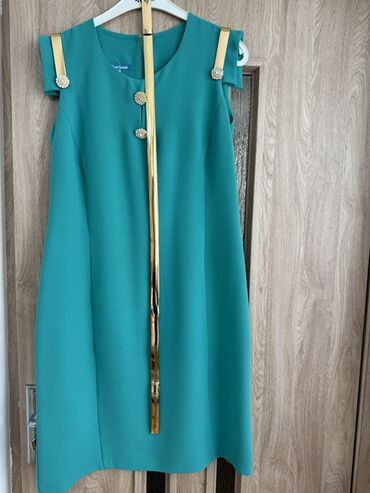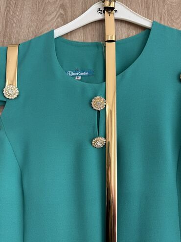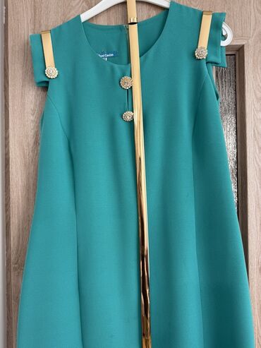 Bej rəngli, kapronlu qısaqollu şıq paltar/şəklinlərinə görə uzun jilet silueti. - Düz kəsim, dizə yaxın uzunluq - Yumru yaxa - Ön hissədə tam uzunluq boyu dekorativ qızılı düymələr (relyefli) - İki...