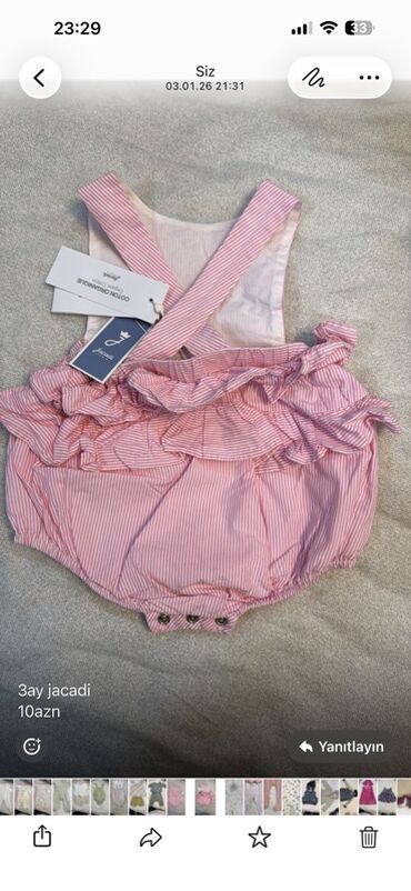 Uşaq üçün qış kombinezonları dəsti - Üç fərqli modeldən ibarət dəst. - Rəng: çəhrayı tonları. - Material: isti, yumşaq astarlı; qalın dolğulu parça. Bir modeldə toxunma (trikotaj) üst, içi isə şəp...