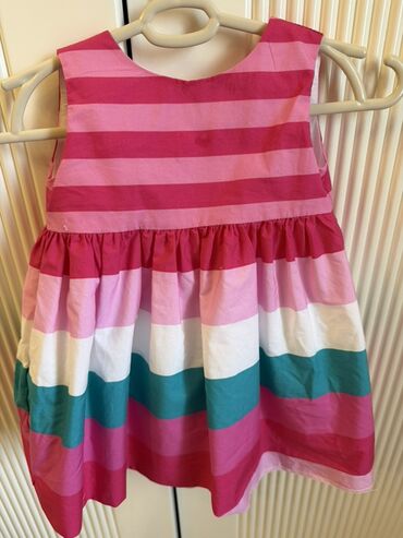 Uşaq paltarı – çiçək naxışlı, açıq çəhrayı rəngdə - Model: qolsuz-açıq çiyinli, yüngül volantlı qısa qollu görünüş, büzməli ətəkli - Parça: nazik, nəfəsalan pambıq tipli toxuma (daxili qat ağ rəng...