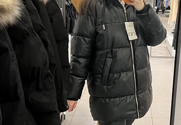 Qara süni kürk və dəri detallar ilə qadın üst geyimi - Rəng: dərin qara - Material: yumşaq, parlaq teksturalı süni kürk; qolların uclarında və ön hissədə dəri detallar - Dizayn: geniş yaxalı, qısa...