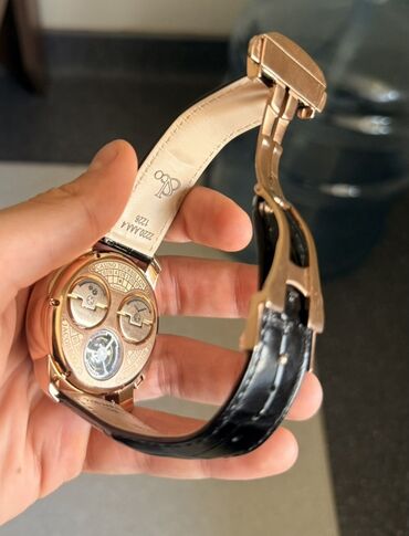 - Korpus: qızılı tonlu (rose gold rəngli), böyük və qalın “casino/roulette” temalı bezel