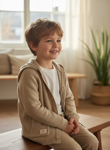 Waikiki Uşaq üçün kapüşonlu jaket/sviter - Rəng: tünd mavi, nazik zolaqlı (melanj effektli) - Model: ön hissəsi tam fermuarlı, kapüşonlu - Material: yumşaq trikotaj/parça, elastik qol ucları və b...